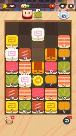 合并相同的寿司块就能制作出美味的寿司!这是一款相当不错的休闲闯关游戏,采用了2048的合成玩法。