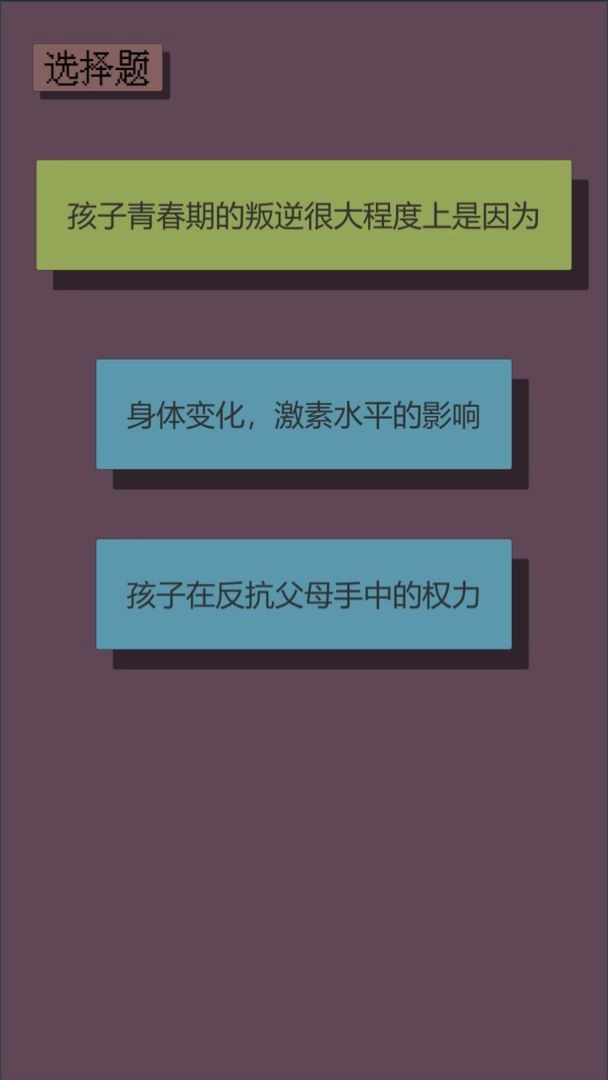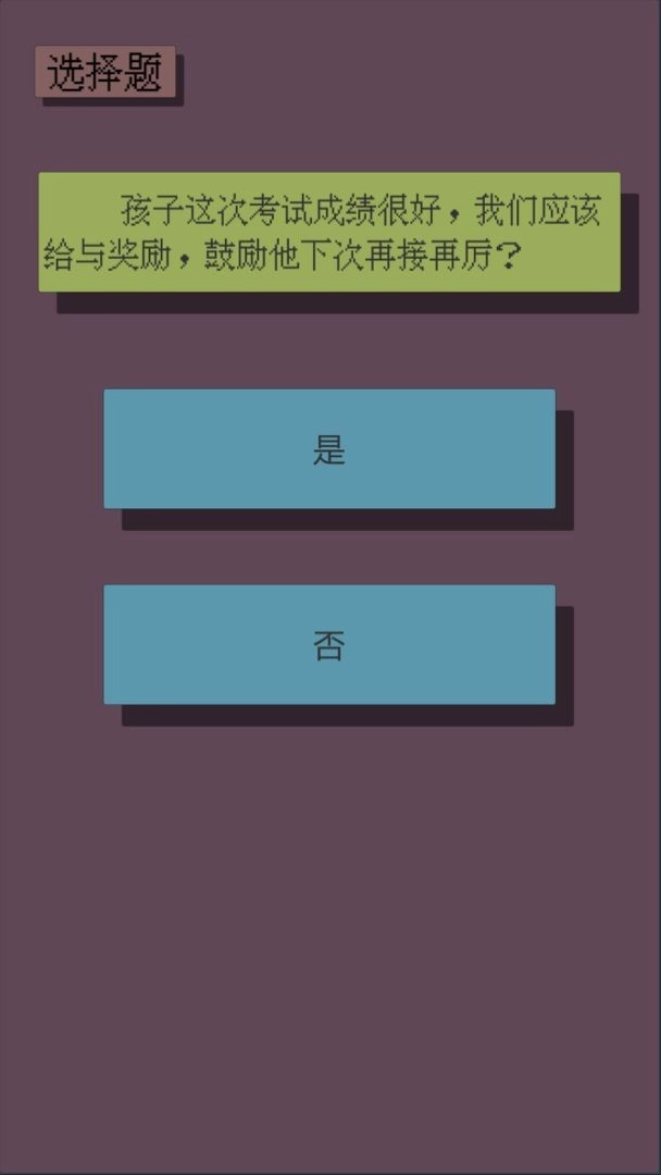 父母资格审查考试是一款有趣的休闲益智游戏,里面有各种各样的测试问题等待玩家完成。游戏关卡十分丰富,每个关卡都值得挑战,闯关成功还能获得各种奖励,并且极大地考验玩家的反应能力。此外,游戏还能让玩家解开一个全新的故事,有许多结局等着去探索。喜欢这款游戏的玩家,快来点击体验吧!