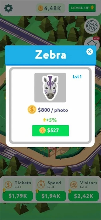 放置野生动物园大亨(IdleSafariTycoon)安卓最新版卡通风格的模拟经营游戏,让您化身为动物园管理者,打造独一无二的生态乐园。玩家通过精心布置动物栖息地、吸引游客参观,并实时照顾动物需求,体验从初创到繁荣的动物园发展历程,感受人与自然和谐共处的乐趣。
