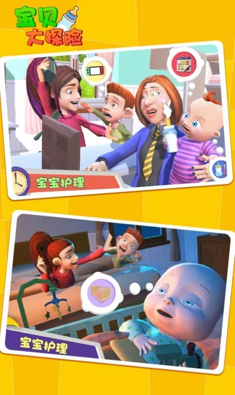 2、操作简单易上手,玩家需要帮助妈妈照料年幼的宝宝,保证宝宝吃得营养、睡得安稳、身体康健。