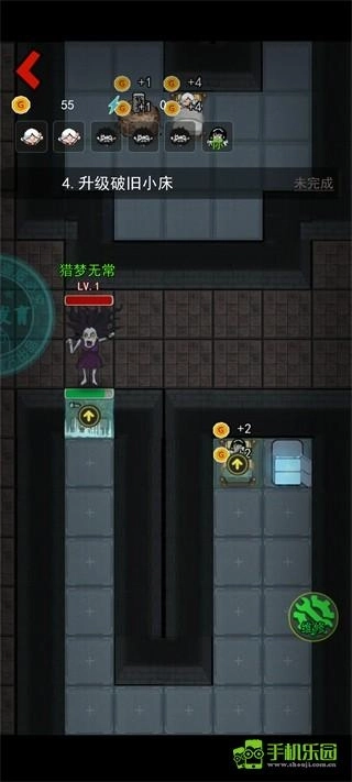 2、留意猎梦者动向,门受损时点击右下角 “维修” 按钮,或提前建造维修台自动回血。