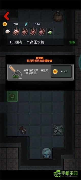 3、后期可拆除旧炮台,换成高压水枪、蛙炮塔等更强力的防御设施,持续压制猎梦者。