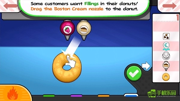 1、首先,玩家要先为顾客进行点餐操作,在顾客选定自己想吃的甜甜圈种类后,就能够着手制作对应的甜甜圈了。