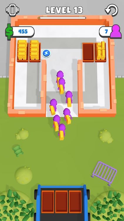 顾名思义,所有玩家需要做的就是进入房间,在每个级别偷金条,然后将金条转移到外面的安全地方进行堆放。这是一款需要很高的团队合作能力的游戏。您不仅必须共同移动金条,而且还应谨慎行事,避免敌人的调查,并将它们全部迅速运送到您的家中,周围的人找不到它们;应该没有杂物,否则很容易发生故障。