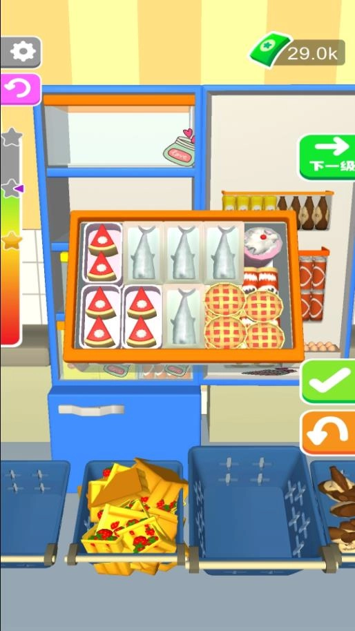 2、玩家可以在这里把牛奶、可乐、鸡蛋等各类物品,依照自己的想法整齐地放进冰箱里。