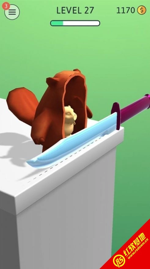 1、一款能让人异常解压的小游戏,玩起来轻松简单,完全不用费脑子,就是那种机械式的切割玩法。