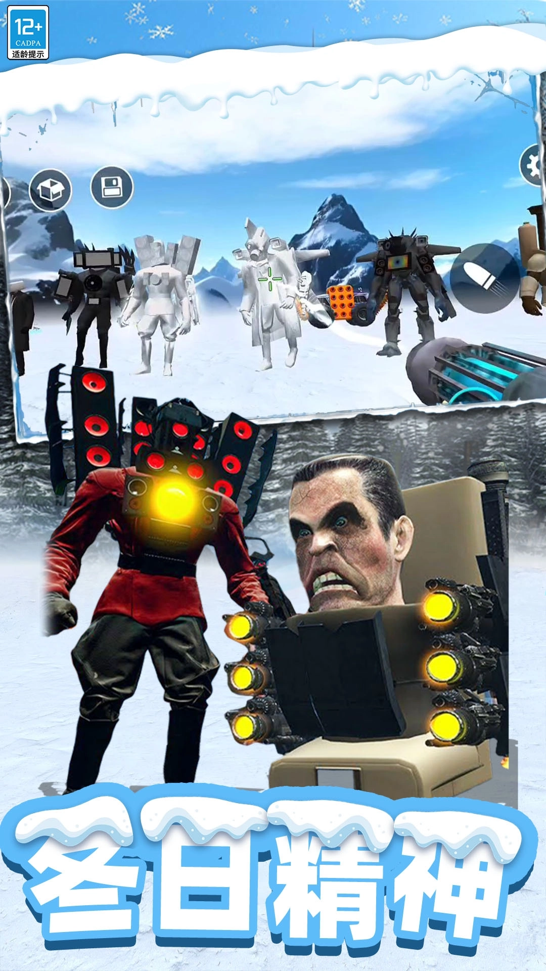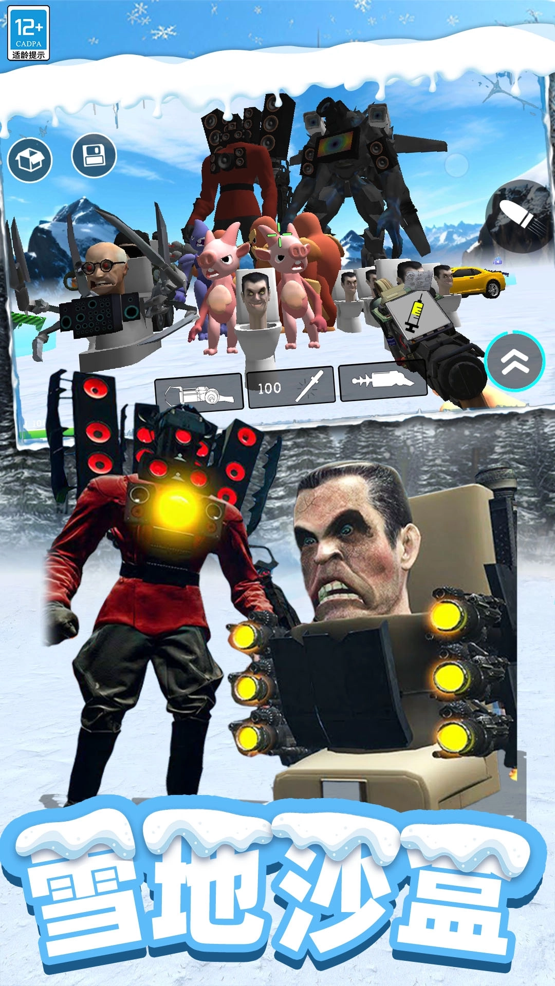 欢乐时光模拟是一款别具特色且趣味十足的马桶人沙盒模拟游戏,其玩法独特新颖,极具挑战性。游戏采用全新的战斗模式,玩家能够借助种类丰富的武器装备,对怪物发起射击攻击。同时,游戏还拥有全新的雪地场景设定,视觉效果极为逼真,为玩家带来沉浸式的游戏体验。