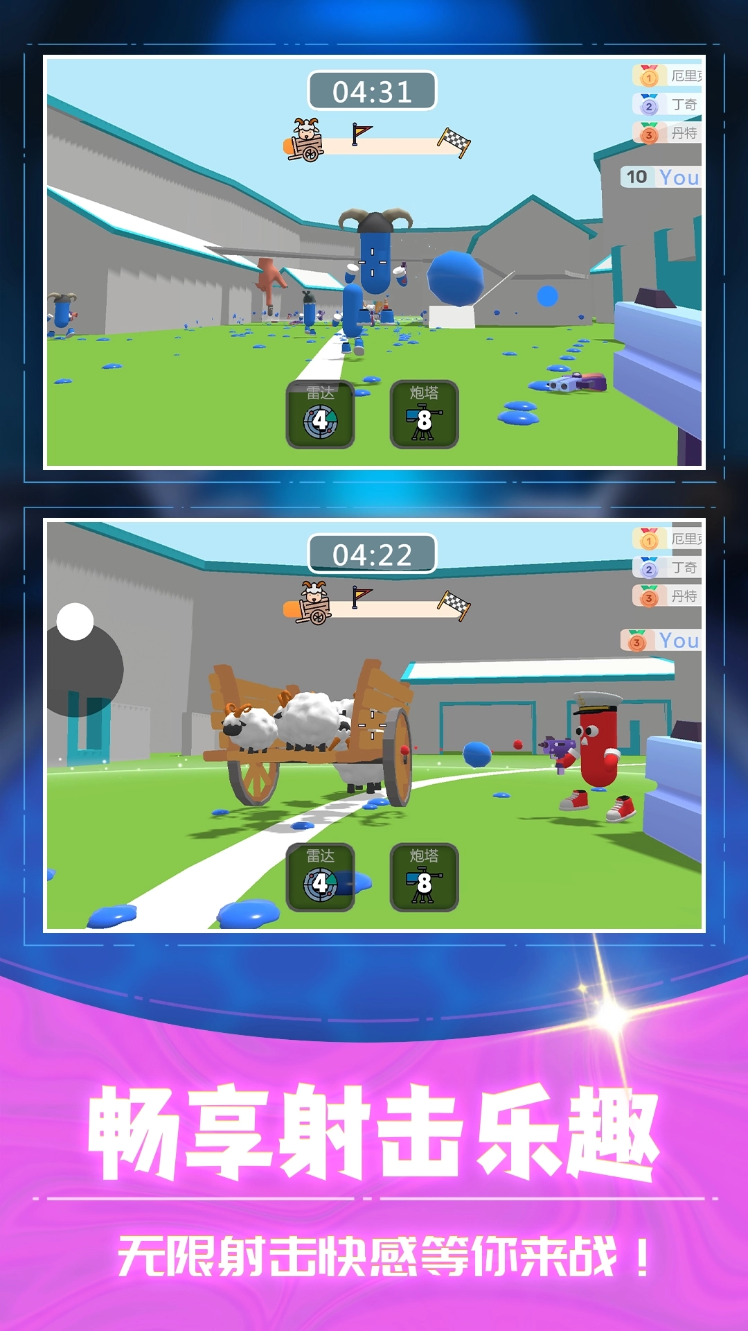 3D射击大乱斗是一款极具刺激感的射击对战游戏,在应对形形色色的关卡时,你得准备好各式各样的武器,这里有丰富多样的武器装备可供挑选,能实时营造出最紧张刺激的战场氛围,还有全新的互动模式,便于玩家和好友一同畅快游玩,更有多种竞技模式等待你加入体验。