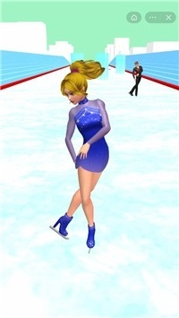 在跳舞达人秀游戏中,玩家需要在滑冰的赛道上做各种不同的动作来躲避场景中的建筑物品。