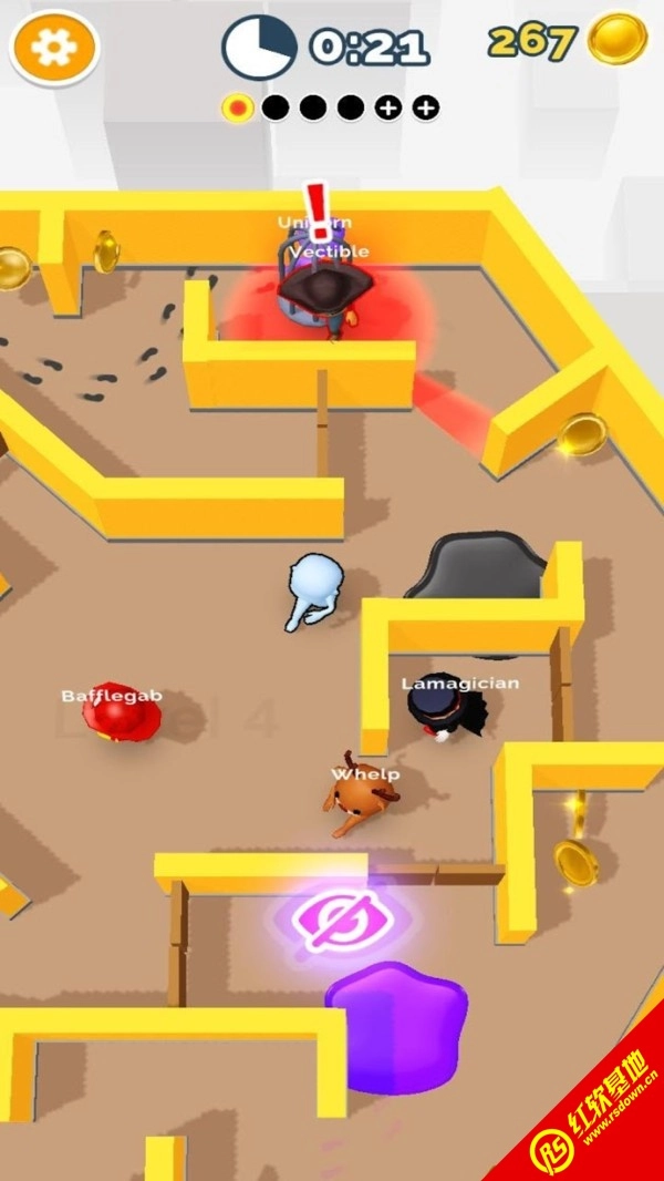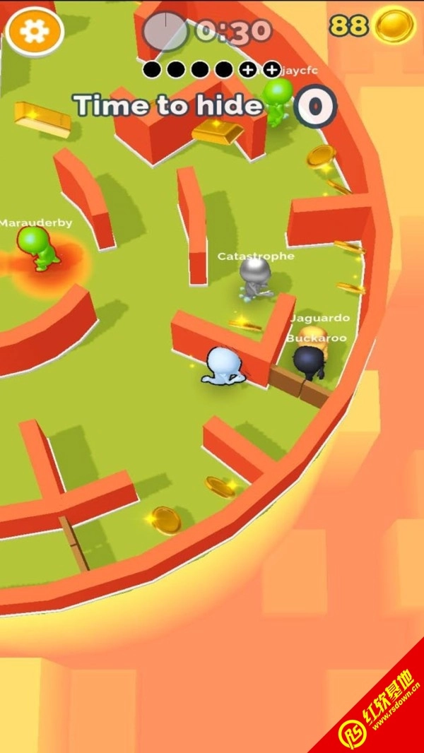 这是一款十分有趣的休闲游戏。在游戏过程中,你需要在规定时间内躲到安全区域,躲避一连串的陷阱与机关。与此同时,还得避开对手的追击。及时抵达安全区域就能顺利进入下一关。独特的上帝视角能让你俯瞰全局,还有更多卡通皮肤等你解锁。