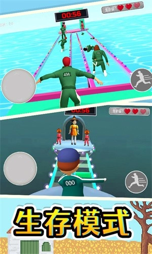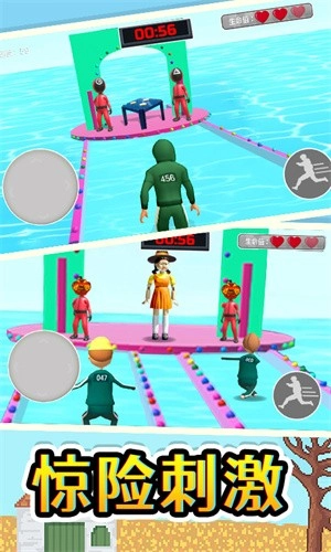 1、我们融入了多种不同的鱿鱼游戏玩法,并打乱了它们的出现顺序,这样玩家就不会对单一玩法感到厌倦。