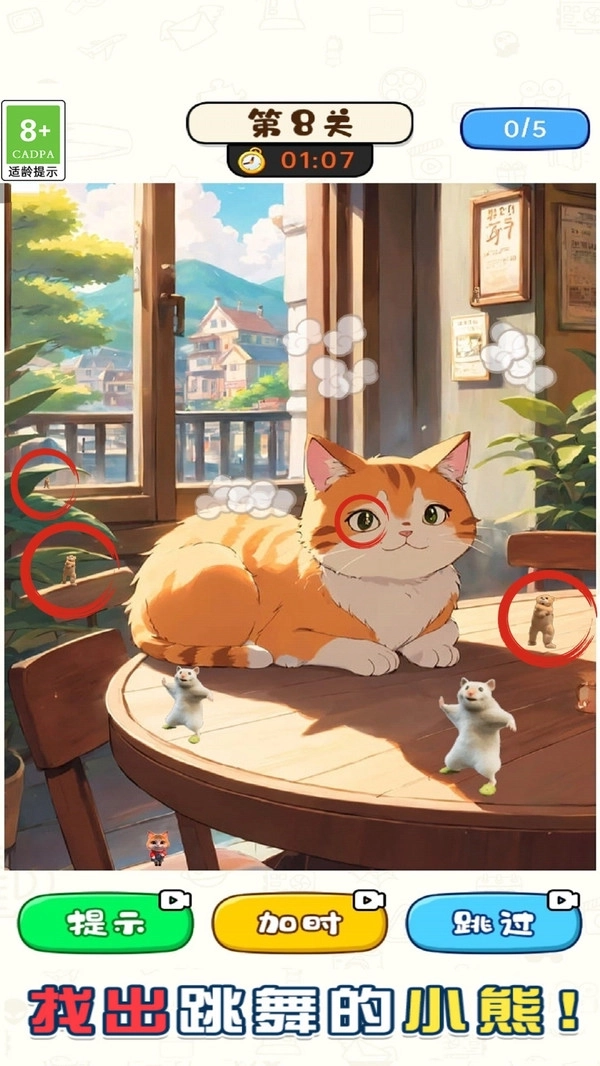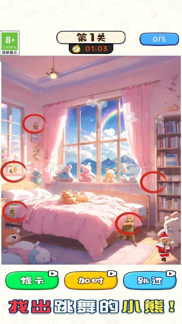 1、每一张图片里都藏着一只正在跳舞的小熊,玩家得在游戏里把它找出来。