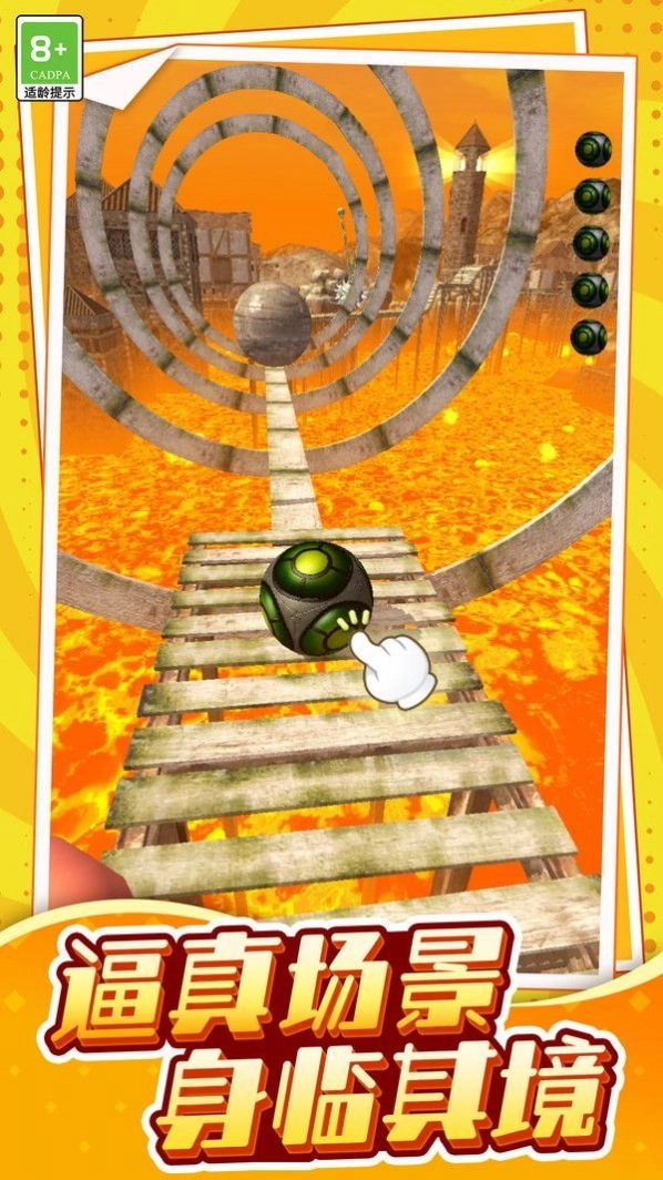 1.玩家可通过手指滑动屏幕或倾斜设备的方式,来操控小球的移动方向与速度。