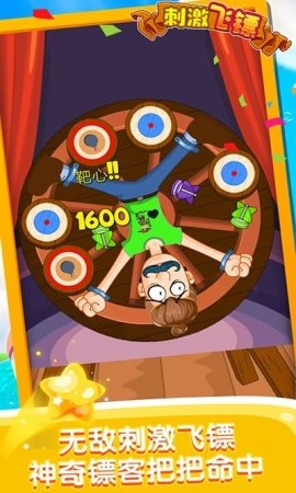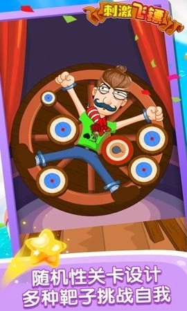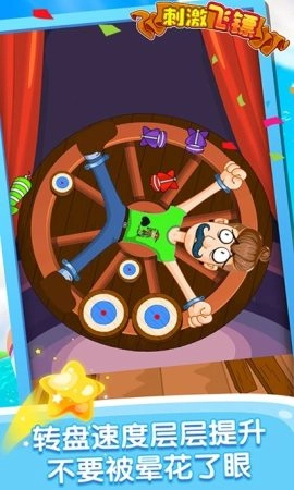 面对那个巨大的旋转转盘,你得把飞镖投向转盘上的目标。记住别朝着马戏团老板射击,不然飞镖就会被没收!