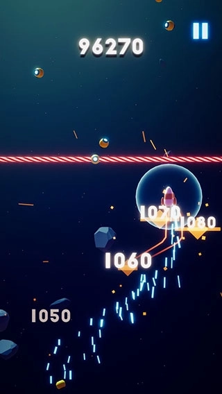 3、游戏带有惯性机制,如果小球没有合适的落脚点就会掉落出屏幕,因此需要精准控制小球的落点,确保它能持续弹射。这一过程十分考验玩家的反应速度,稍有不慎就可能导致游戏失败,挑战性十足