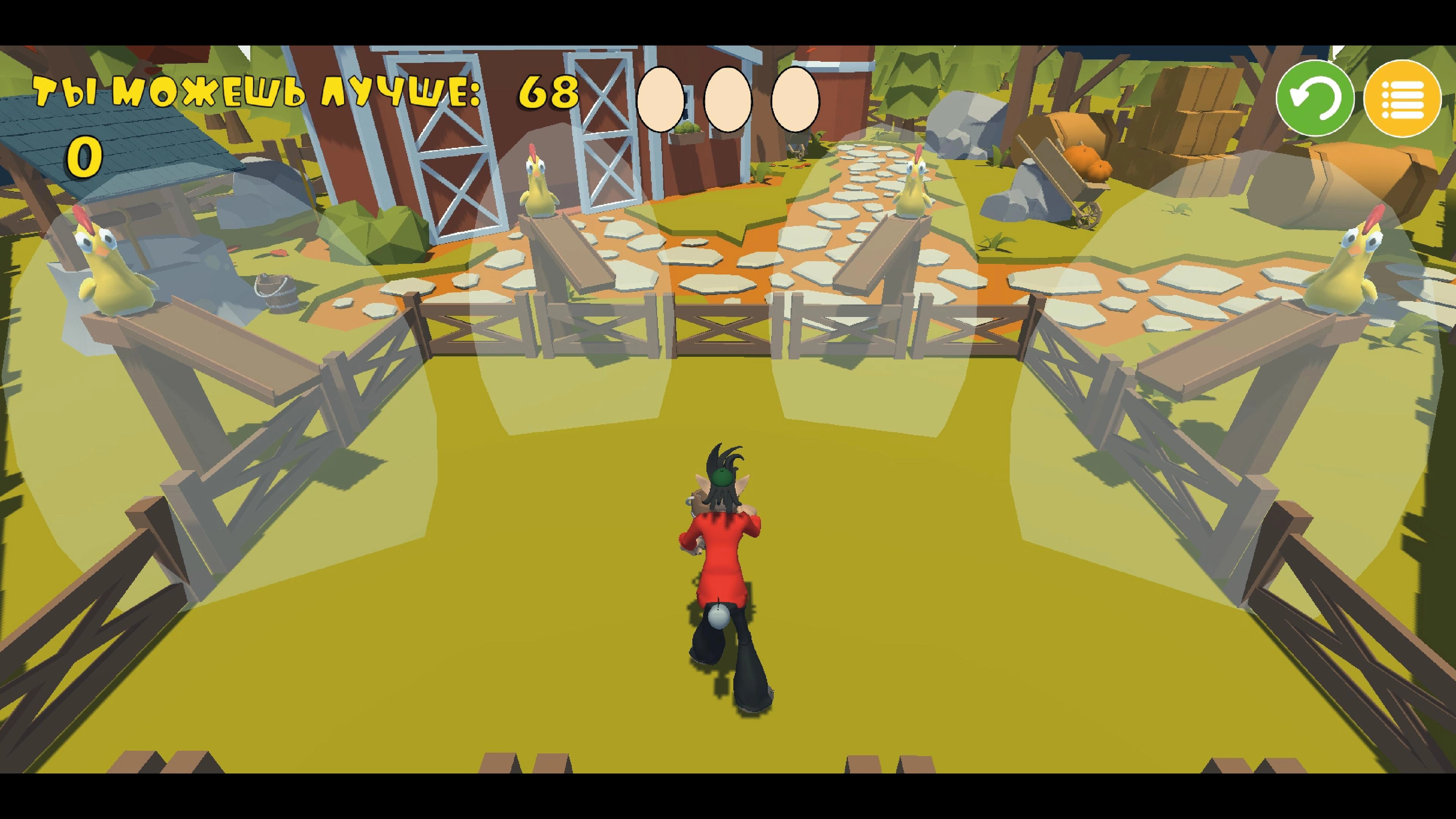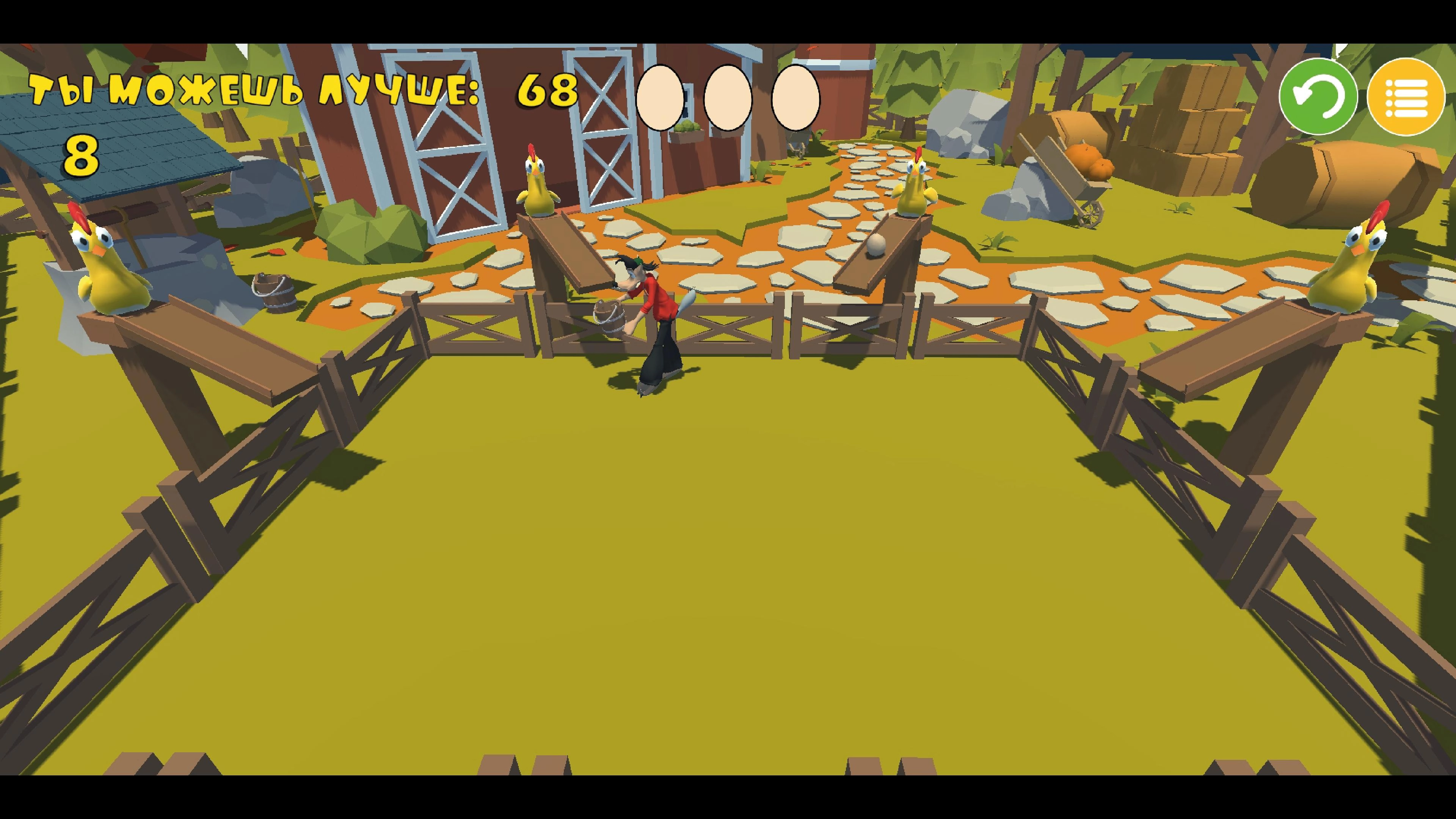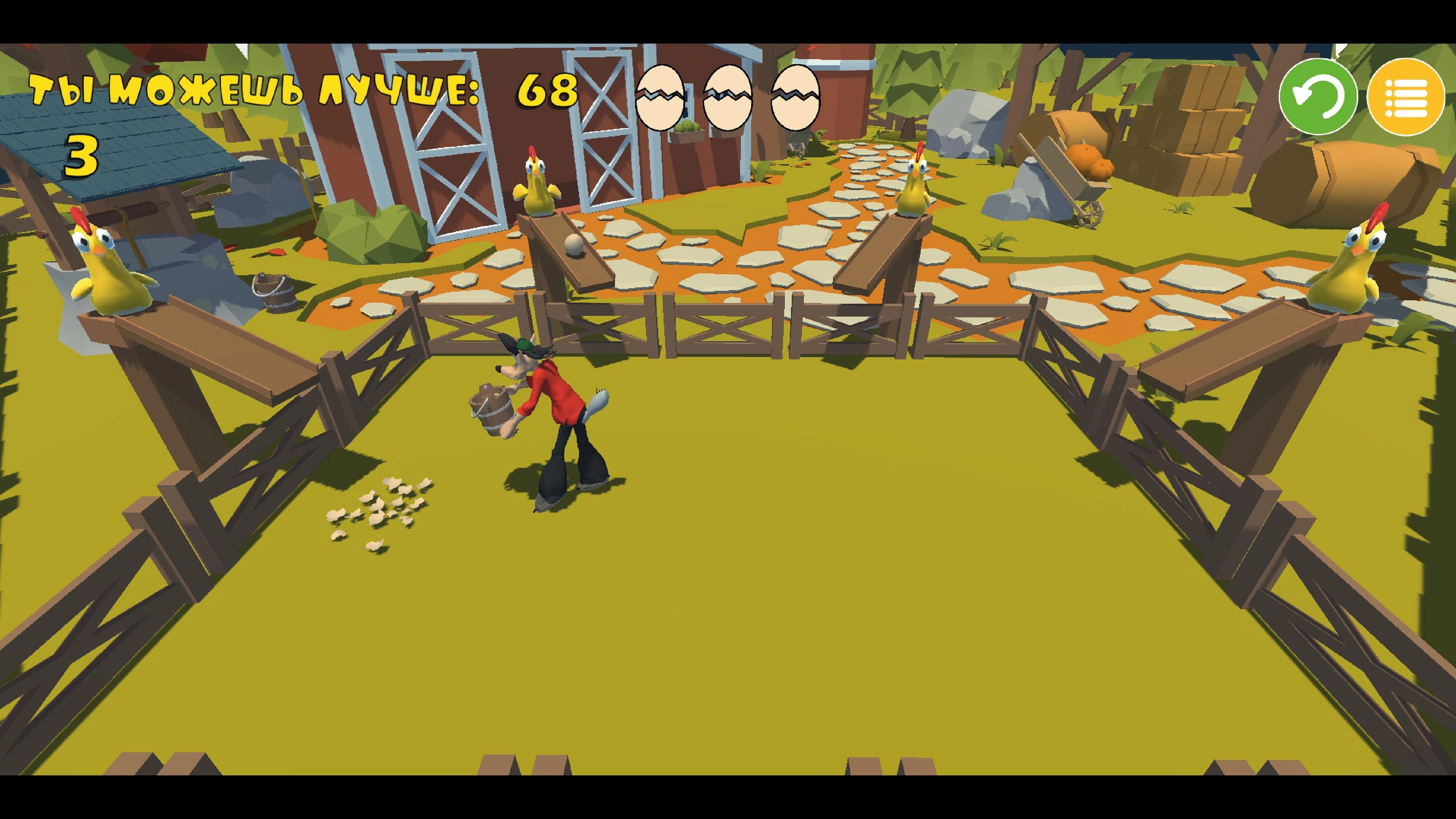 游戏的目的是接住最多的鸡蛋,如果鸡蛋落在地上你的生命值就会减一;