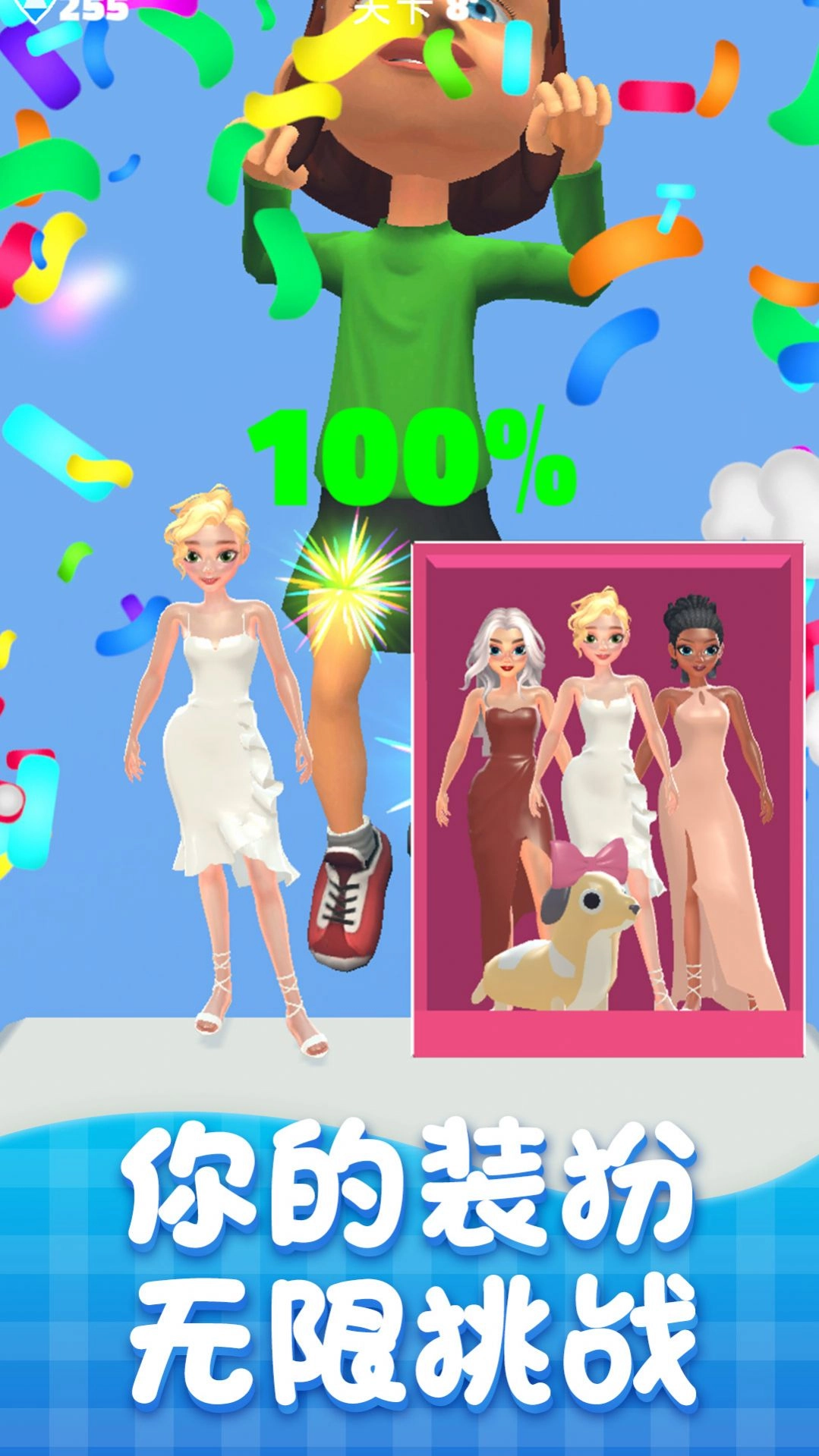 2、丰富的玩法,可以随时更换不同的服装,搭配搭配获得高分。