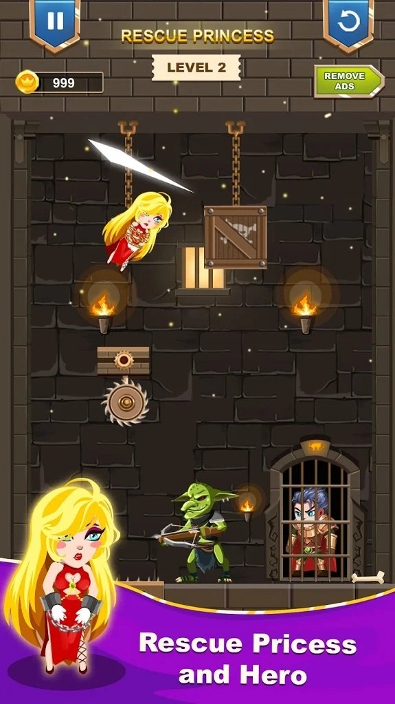公主营救最新版,为解救公主为主题打造的一款休闲类游戏,玩家在这里化身勇士通过自己的聪明才智以及灵活的身手成功的解救公主,关卡有一定的难度,玩家需要通过自己不断的摸索以及探险一步一步的接近公主并且获得解救的办法,不断地消灭的前方的敌人以及成功的拯救公主,既刺激又带有解谜的风格,很受众多玩家的欢迎。