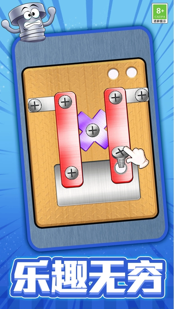 1、利用策略来操控螺丝,顺利通过关卡考验,充分展现你的聪明才智。