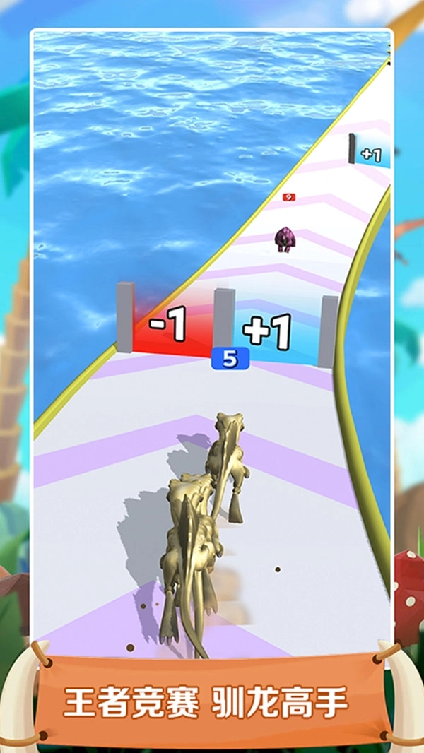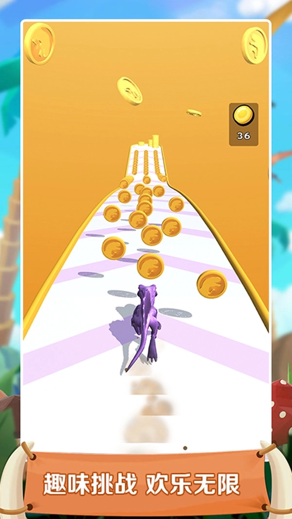 在《无尽冲刺》里,你可以操控自己的角色尽情冲刺,还能把相同的恐龙进行融合,这样才能让恐龙拥有更快的速度。当冲过终点时,恐龙的体型越大,你能拿到的分数就越高。