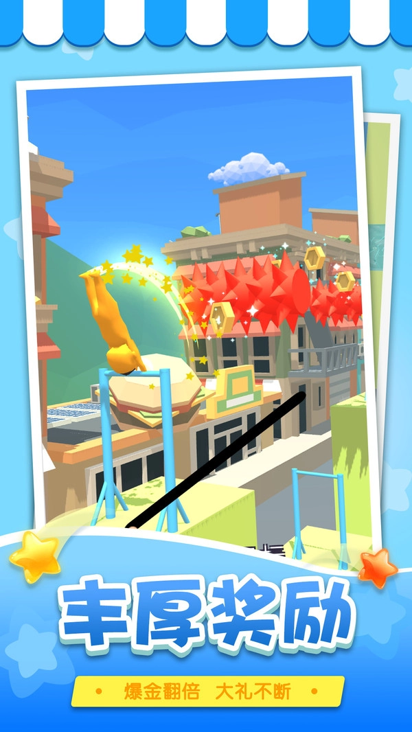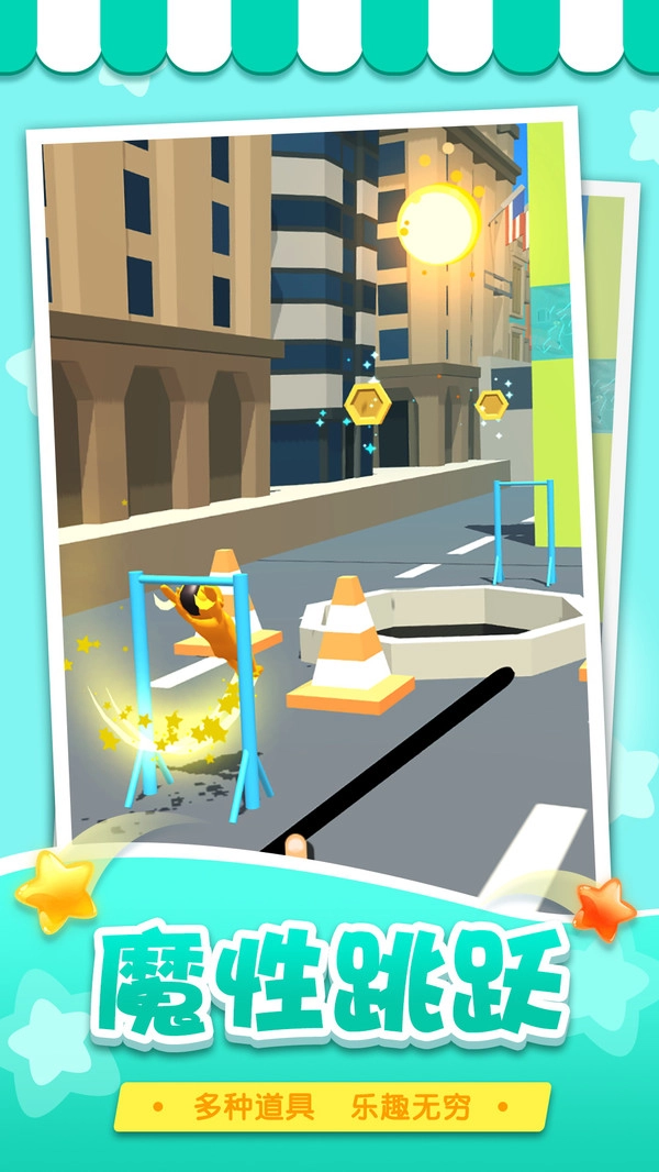 2、魔性跳跃搭配多样道具,乐趣满溢;丰厚游戏奖励,带来更多惊喜体验。