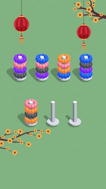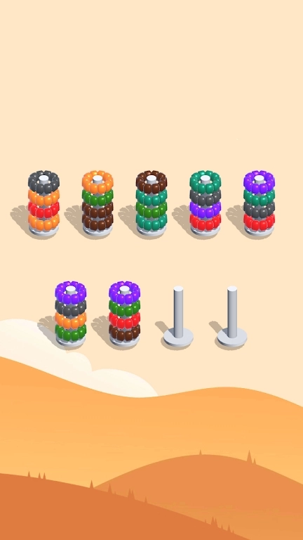圈圈颜色排序游戏安卓版(SortColorHoop)玩家需要通过移动不同颜色的圈圈,将它们按照规定的顺序进行排序。游戏设有多种挑战关卡和难度选择,让玩家在解决排序问题的过程中锻炼逻辑思维和注意力集中能力。游戏特色包括清新简约的界面设计、丰富多样的关卡设置,以及轻松愉快的游戏体验。