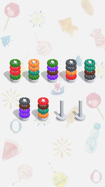圈圈颜色排序游戏一款简单而有趣的益智游戏,玩家需要根据规定的颜色顺序将彩色圈圈进行排序。游戏中会出现一系列不同颜色的圈圈,玩家需要观察它们的顺序,并通过点击或拖动来进行排序。随着游戏的进行,圈圈的数量和难度会逐渐增加,考验玩家的观察力和反应能力。