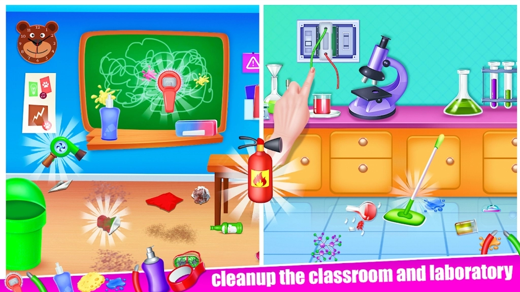 小猪学校清理(PigSchoolCleaning)安卓最新版贴心又有趣的卡通风房屋清理休闲游戏。游戏的主角是一只可爱的小猪,玩家需要扮演小猪帮忙清理杂乱的房间。游戏中包含各种不同的场景,如客厅、卧室、厨房、浴室等,每个场景内都有不少于20个需要清理的物品,包括垃圾、衣服、书籍、餐具等等。