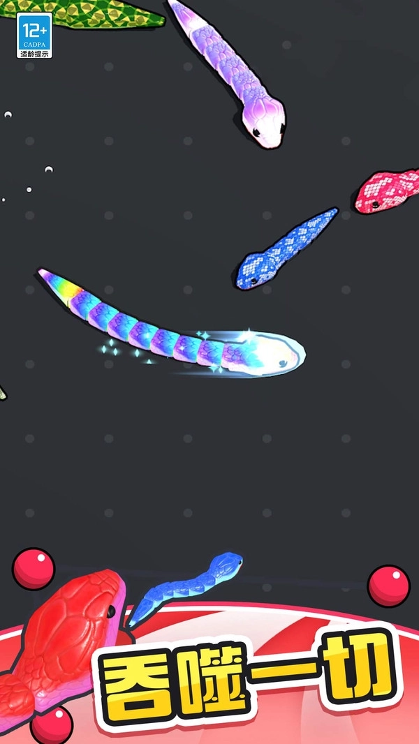 3、按住加速键,借助巧妙的操作让其他角色撞击蛇的身体,促使蛇吃掉自身躯体,从而实现快速成长。