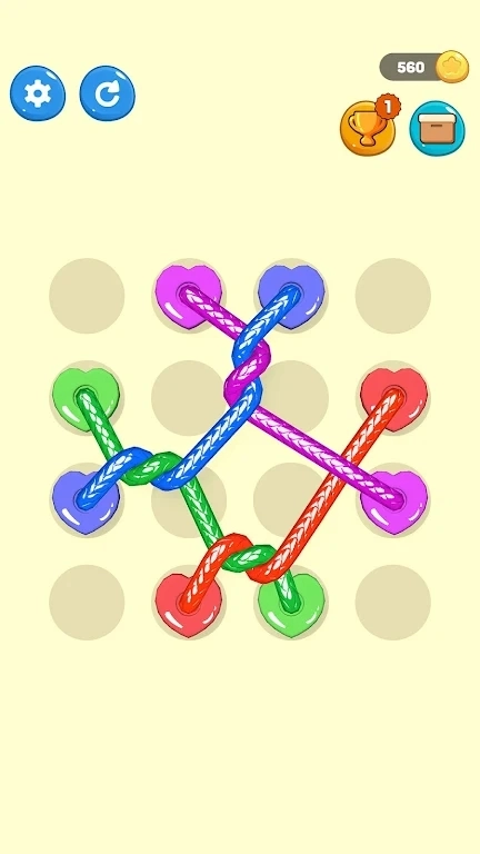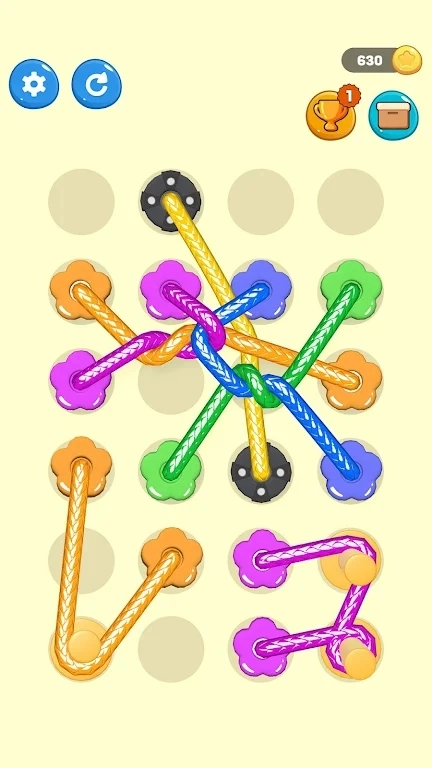 这是一款休闲闯关类游戏,名为《纠缠线条绳结扭曲》。在游戏中,你需要解开所有缠绕的绳子,这非常考验你的逻辑思维能力。游戏采用了卡通画风,提供多个关卡供你选择,能带给你沉浸式的真实体验。此外,游戏内还设有道具系统,帮助你更轻松地闯关,非常值得一试,喜欢的话就快来挑战吧!
