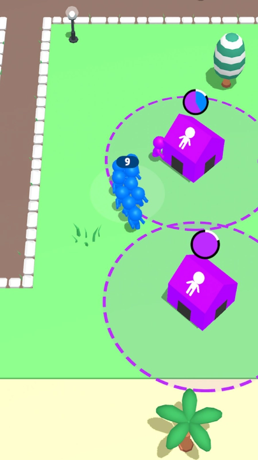 2.壮大你的人群,记得不要放过任何一个房屋中的人,你可以快速吞并他们。