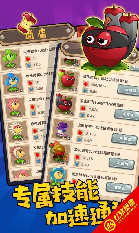 3.植物需要充足的阳光才能成长。当它们成功生长后,其等级、属性和攻击力都会有所改变。