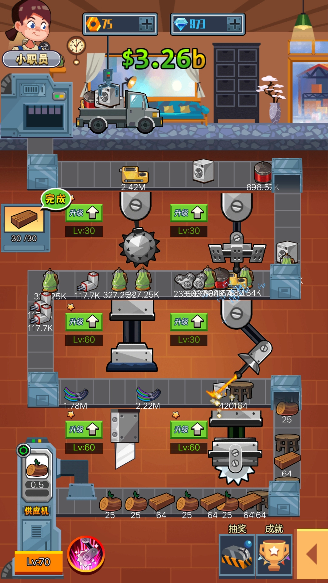 2、积累到一定数量的金币后,你能够对机器进行升级,如此一来便能提升产品的制造效率。