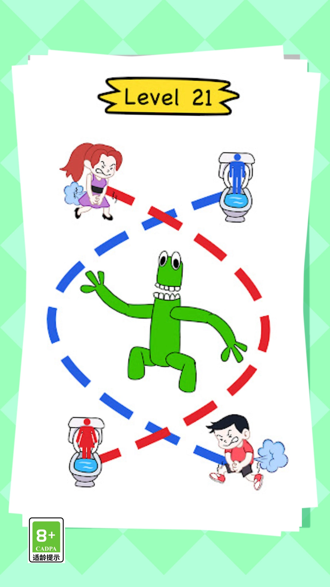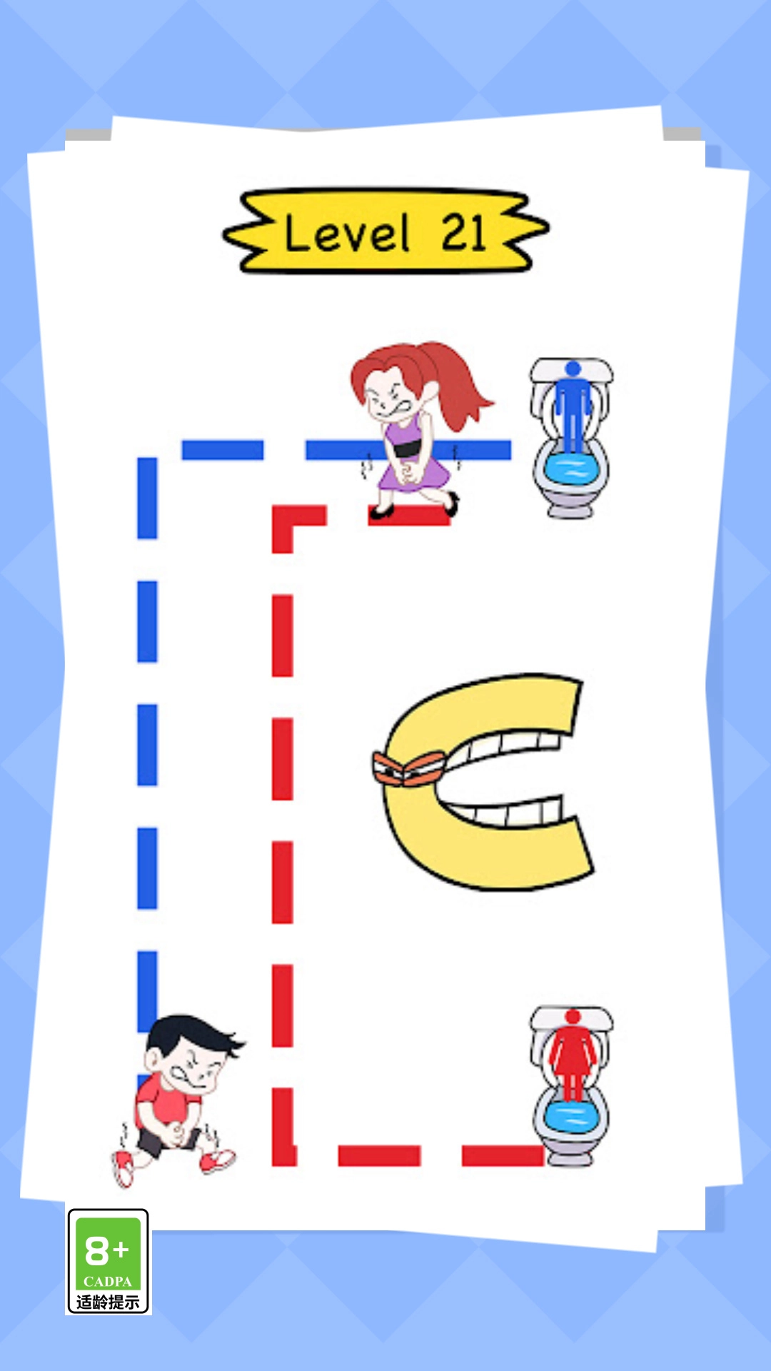 上厕所太难这是一款休闲闯关类游戏,游戏里你需要划线给男孩女孩上厕所哦,你需要画线将他们送入相对应的厕所哦,上厕所太难游戏里多个关卡等你挑战哦,越往后关卡的难度越高哦,游戏采用了卡通的画风,游戏适合各个年龄段的玩家哦,喜欢的快来吧!