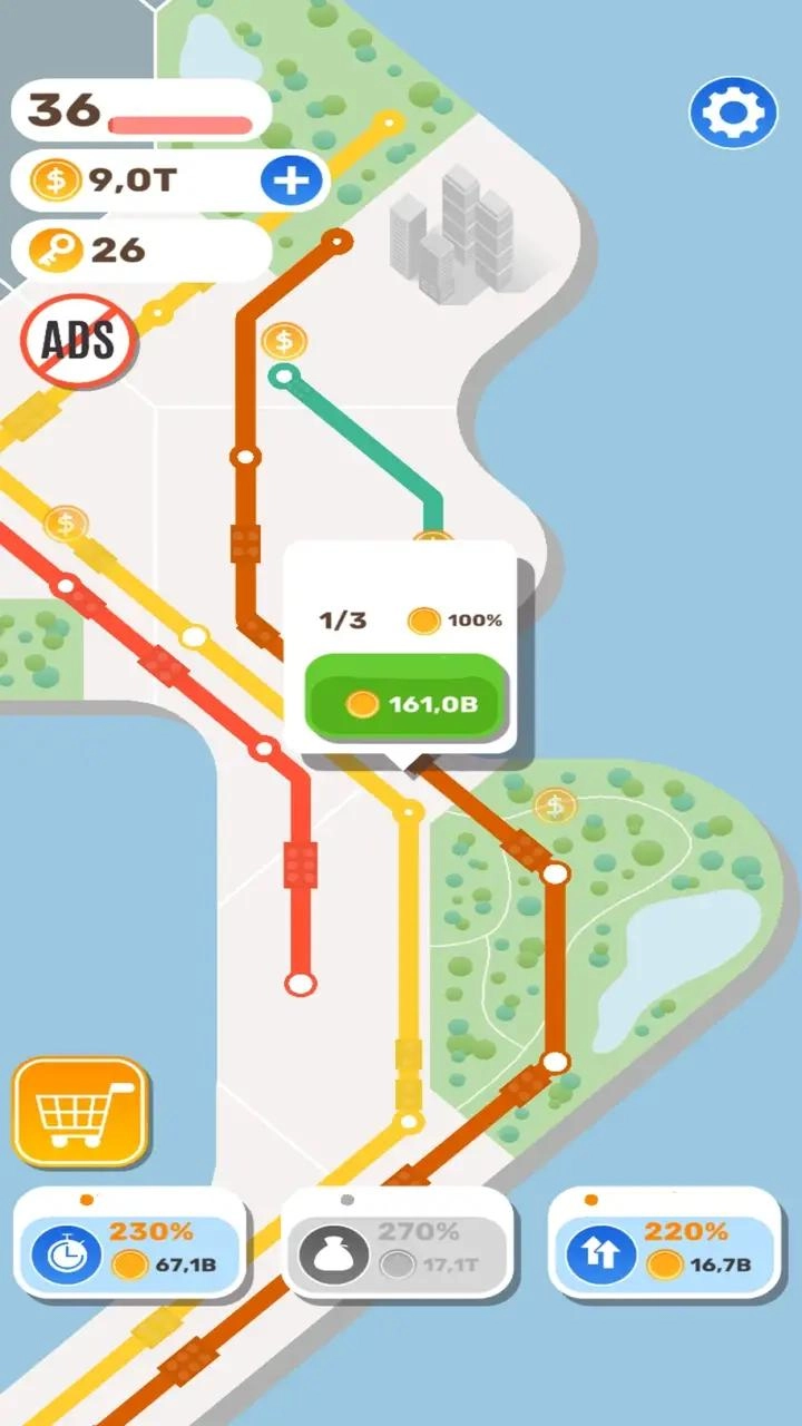 在《地铁大师》里,玩家将化身规划局局长。随着乘客流量持续攀升,你得修建新的地铁线路,增设车站并投入新列车。每当发现新区域,就能赚取更多收益,进而进一步优化你的地铁系统!为乘客提供高品质的地铁服务,目标是提升运营效率,减少乘客换乘次数,缓解拥挤状况,快来打造专属于你的城市地铁网络吧!