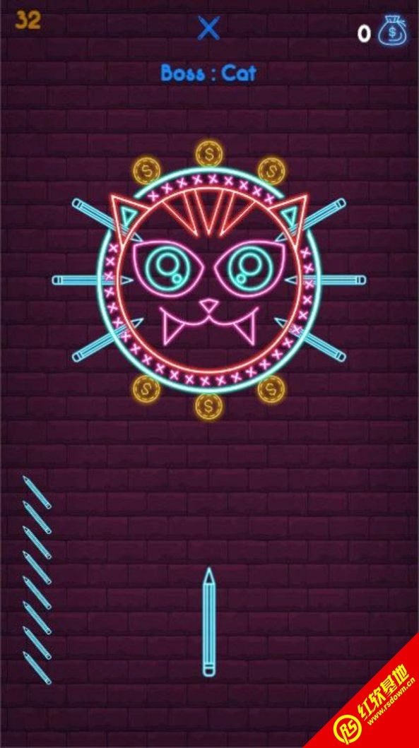 一款新颖有趣的飞刀投掷游戏。玩家需把飞刀投掷到墙上的霓虹灯图案上。