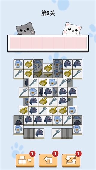 2、玩家找到并点击两个相同的道具即可消除。丰富的关卡难度会随着游戏的进行逐渐增加。