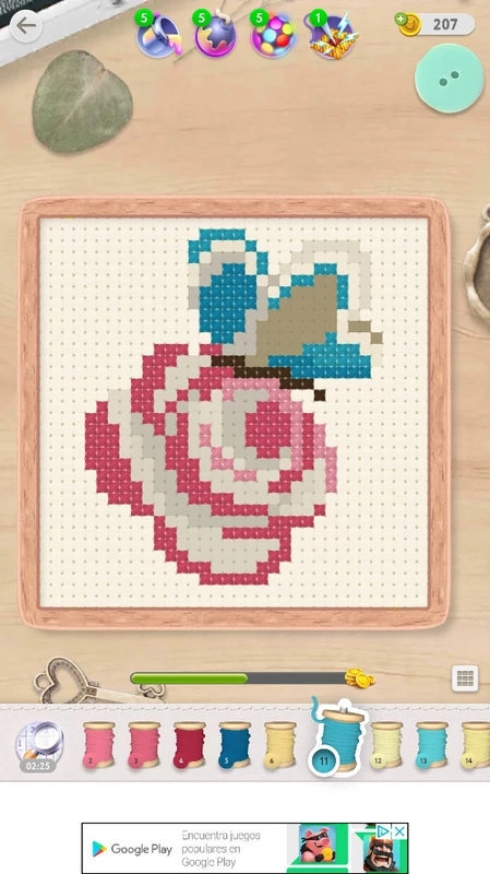 在魔法十字绣中,玩家需要使用提供的针和线来逐步完成图案。