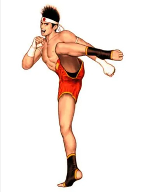 必杀技:极限流连舞脚,靠近敌人时,输入指令:←↙↓↘→+B/D