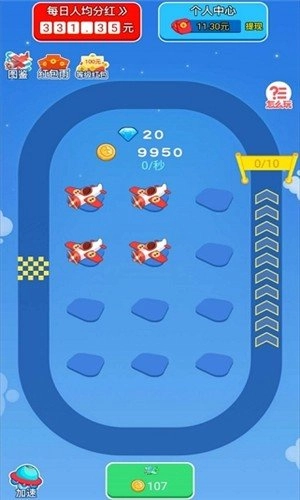 十分有意思的模拟放置类游戏,游戏的玩法是比较有趣的还比较容易上手的,玩家们只要通过收集各种飞机再进行合成就可以获得红包奖励,但是如果你只有同类型的飞机是不能够进行合成的,只能够进行还升级并在战斗模式中展开一场飞机对战进行对抗。