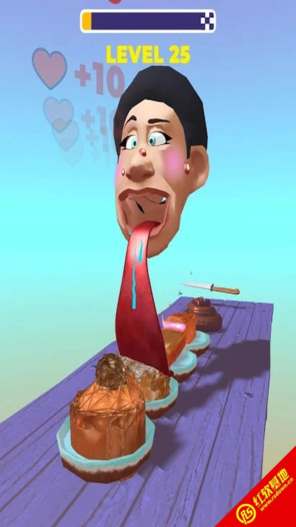 极限冲刺躲避危险刀,快速控制舌头吃更多的食物。