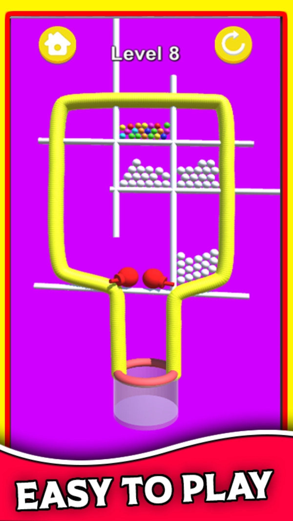 在这里,你只需拖动那些阻挡球球掉落的阀门,让所有球球都能顺利落入瓶子管道里。