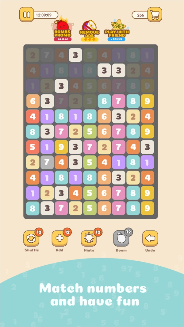 ·在彩色方块中查找相同的数字,然后单击方块以消除它们。