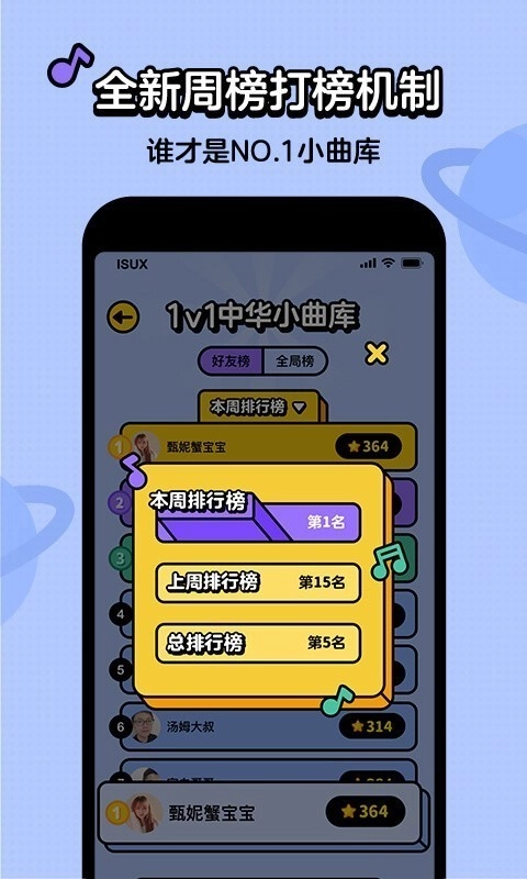 2、1V1PK,对决,猜歌领域也有排位赛!瞧瞧谁才是真正的实力王者!