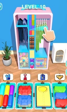 一款收纳技巧丰富的整理方法,能够对这个房间里的所有衣物等物品进行有序排列。整洁的环境能给人带来舒适的感受。掌握分类储存的方法可以收获更多快乐,这里有一些能为你带来真正愉悦的技巧。你是这里最出色的收纳专家。你需要在每个关卡中完成收纳任务,任务难度各不相同。这里有许多不同类型的收纳任务。可以借助相关工具来帮助你更好地通关,解锁更多内容。快来挑战吧。