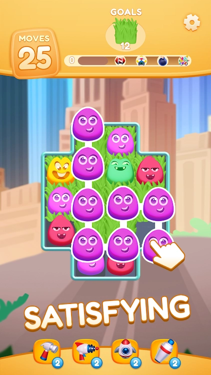 三个颜色相同的软糖连在一起可以发生神奇的效果,丰富的关卡给你无限的挑战!