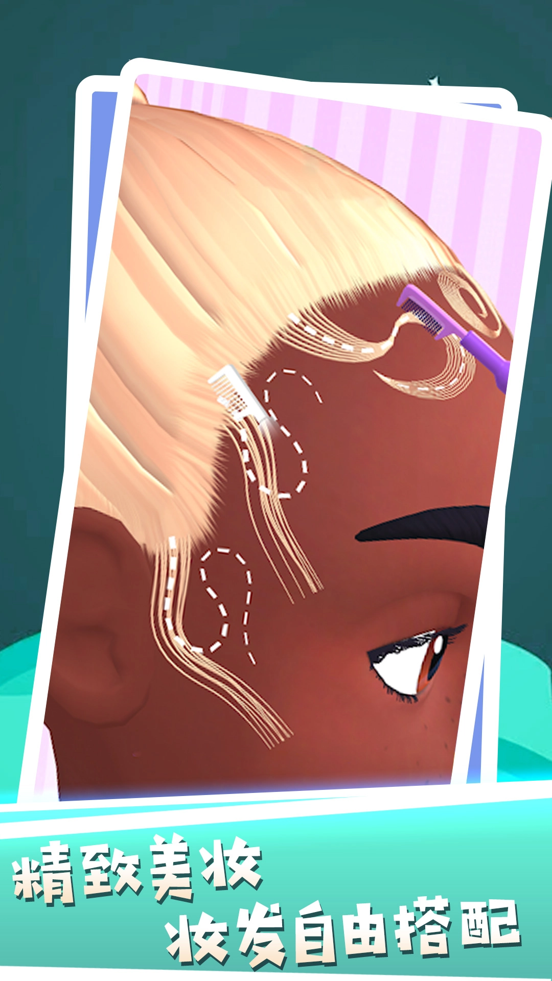 这款游戏非常适合妹子玩,就好像在捏娃娃一样,你可以给角色搭配各种妆容,然后穿上美美的服装和配饰,早就属于你自己的潮流,超多服装配饰任你解锁和收集,充满满足你的收集欲,玩起来非常的有意思!还能对发型、妆容等进行精致的细节打理,发挥你的想象力创造出自己想要的结果,游戏颜色画面亮丽,多姿多彩的游戏画质效果玩起来很不错哦。