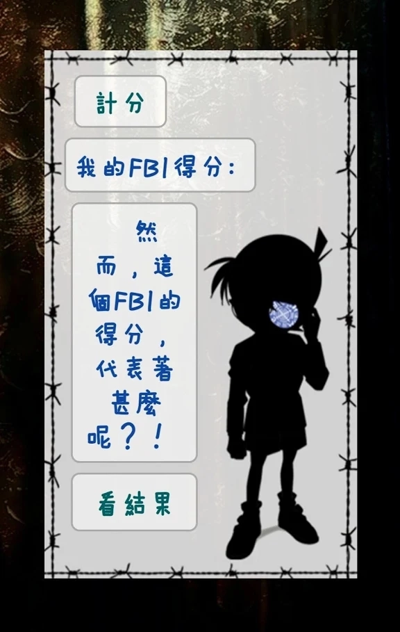 是一个免费的,简单的心理测验!透过完成共36条选择题,去测试玩家有没有成为FBI的特质。作答时,看到题目后,只需要用直觉作答即可,不会有压力!到最后,还会有一些重点的答案分析,让玩家更清楚自己的一些心理!希望这个游戏,能够带给大家一点惊喜!