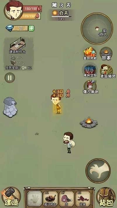 1.游戏采用卡通风格的角色形象设计。当玩家看到游戏画面时,卡通形象与荒岛的背景形成鲜明对比,由此产生一种反差萌的效果。