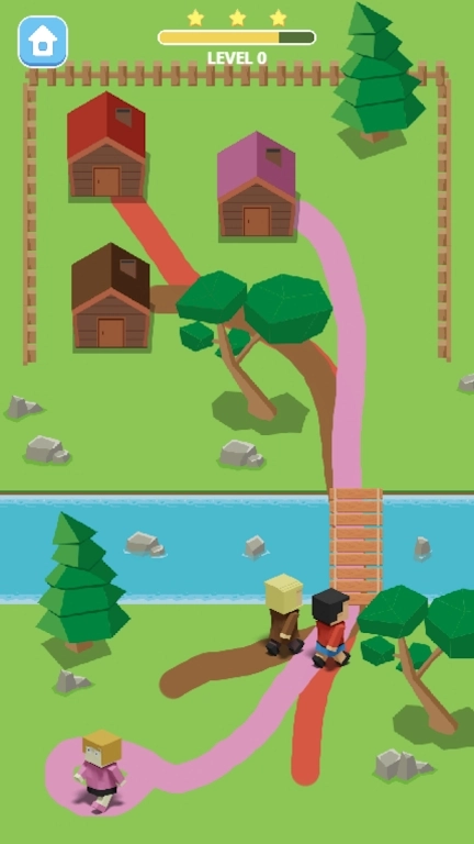 回家画线是一款通过绘制来让小人快速地到达回家的地方,游戏的关卡很多,绘制的过程很简单,这是很考验思维能力的,而且回家的顺序也是很重要的,不然两个人都会撞在一起的哦~游戏的操作还是比较的简单,还要多多的练习,新手小白也可以快速地上手,快来试试吧~